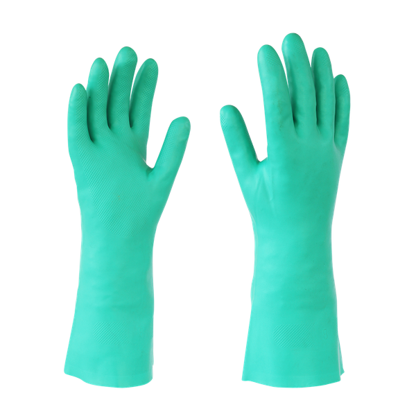 Guante fabricado en nitrilo al 100%. Resistencia a cortes, enganchamientos, abrasión y pinchazos. Resistente a solventes, soda cáustica y grasas animales. Flocado de grip diamante corrugado en palma para mayor agarre y seguridad.